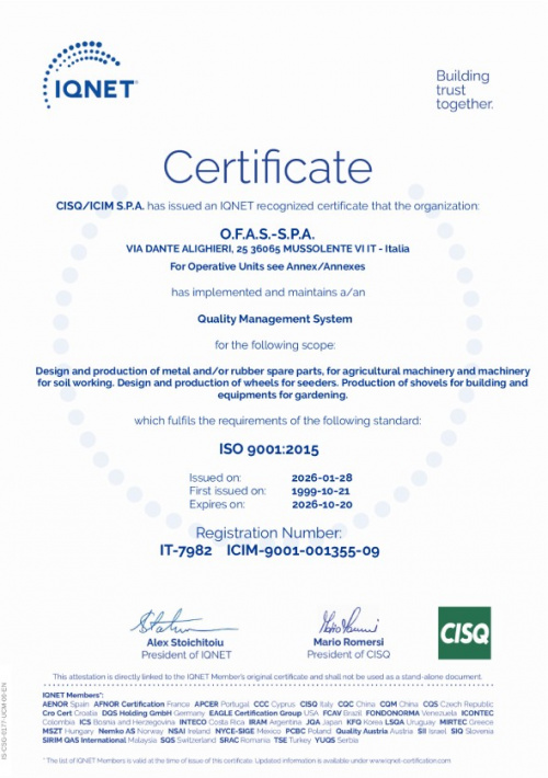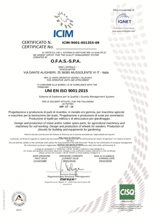The solidity of the quality system on which O.F.A.S. is based, is constantly verified and certified by the body in charge through certifications and inspections, in order to make the production processes increasingly efficient and advanced.